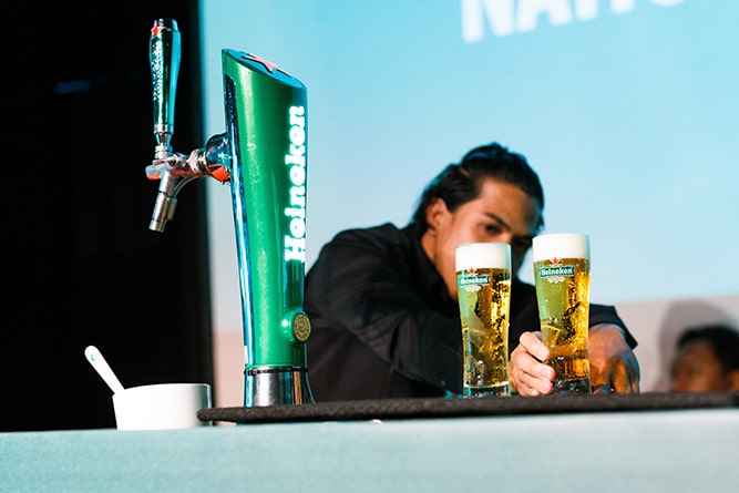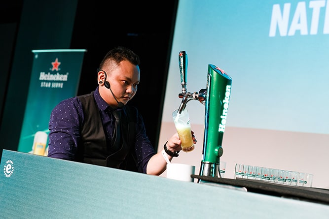 | Daimler Kenn Cagas, Heineken® Star Serve National Final 2017 winner, demonstrating a perfect serve of Heineken |
