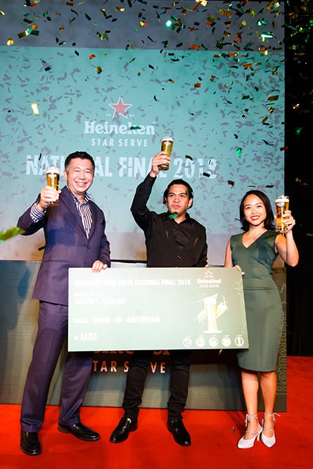 | The 2018 Heineken® Star Serve Champion, Edilon C. Cauilan, showing off his perfect serve of Heineken® |