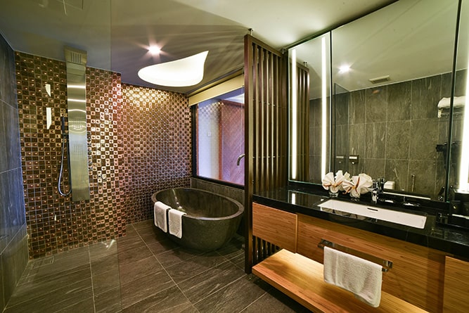 Over 60% percent of the hotel’s guestrooms and suites have front views of the beach, ranging from the 55-square-metre Sunny Deluxe Seaview Room, to the elegantly-styled Romantic Deluxe Room with a private pool and a luxurious living space.
